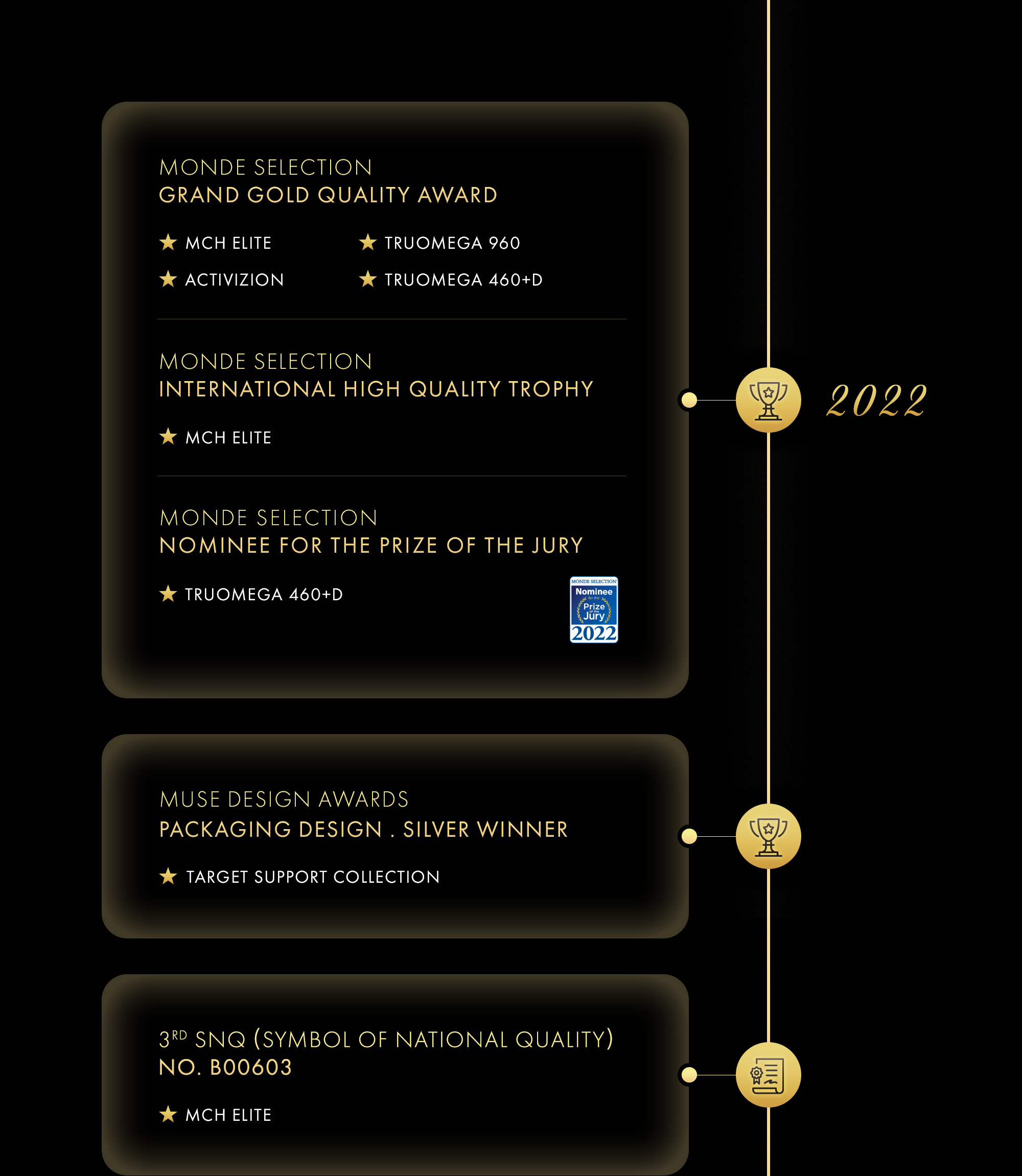 - Products that receive the Gold Award or Grand Gold Award for three consecutive years are further awarded the International High-Quality Trophy.