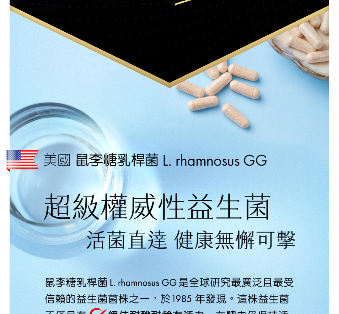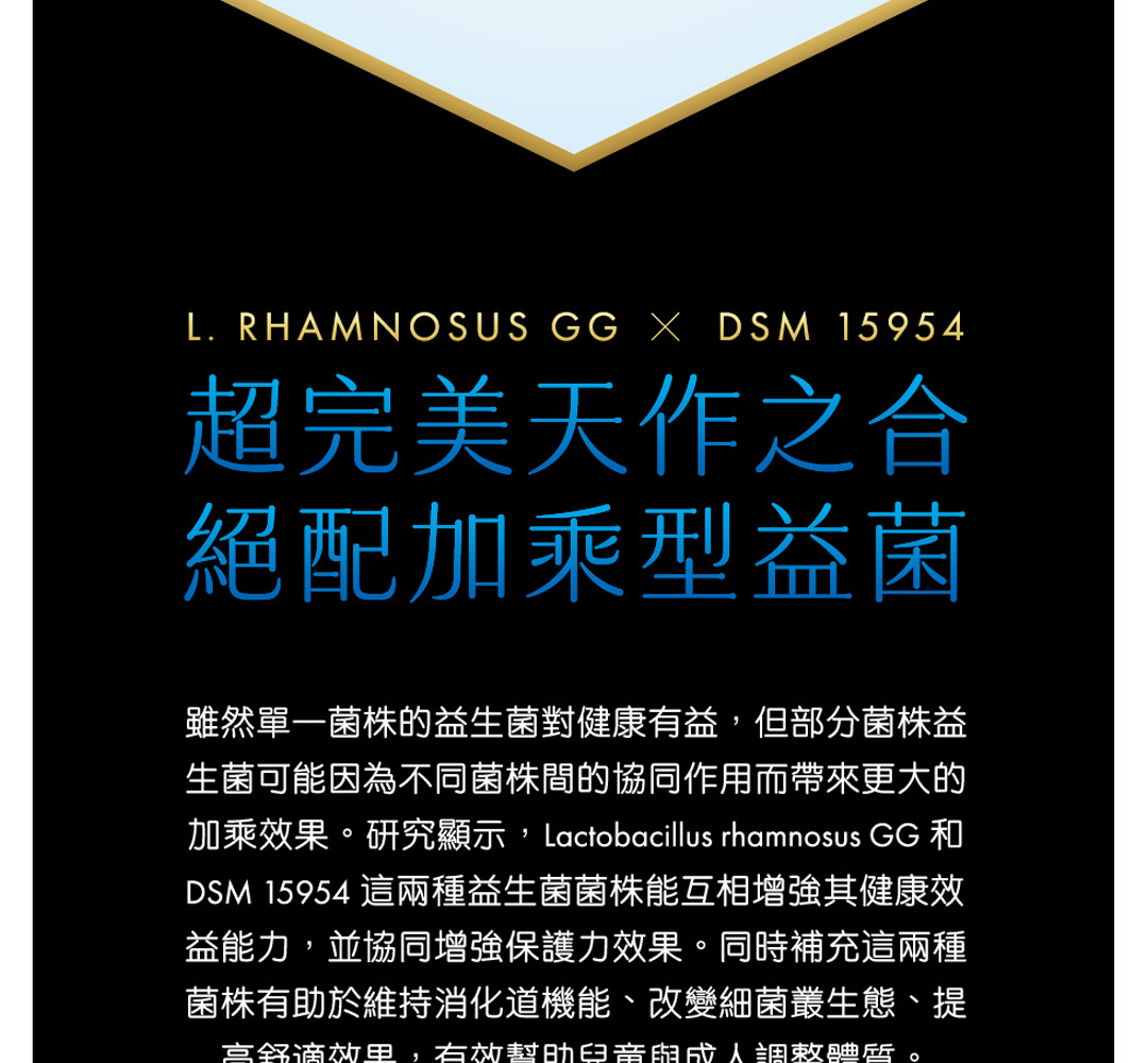 World-famous, science-based probiotic strains L. GG+DSM15954