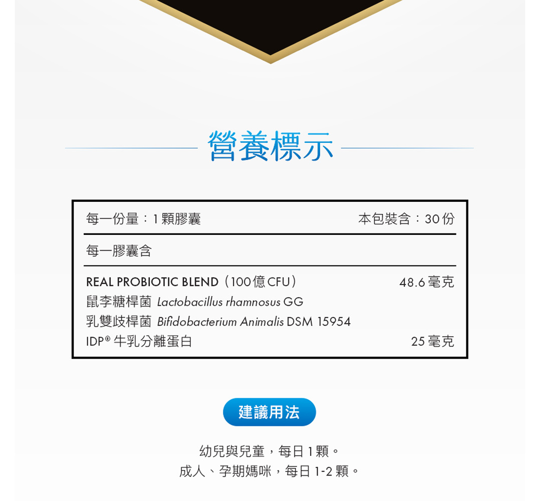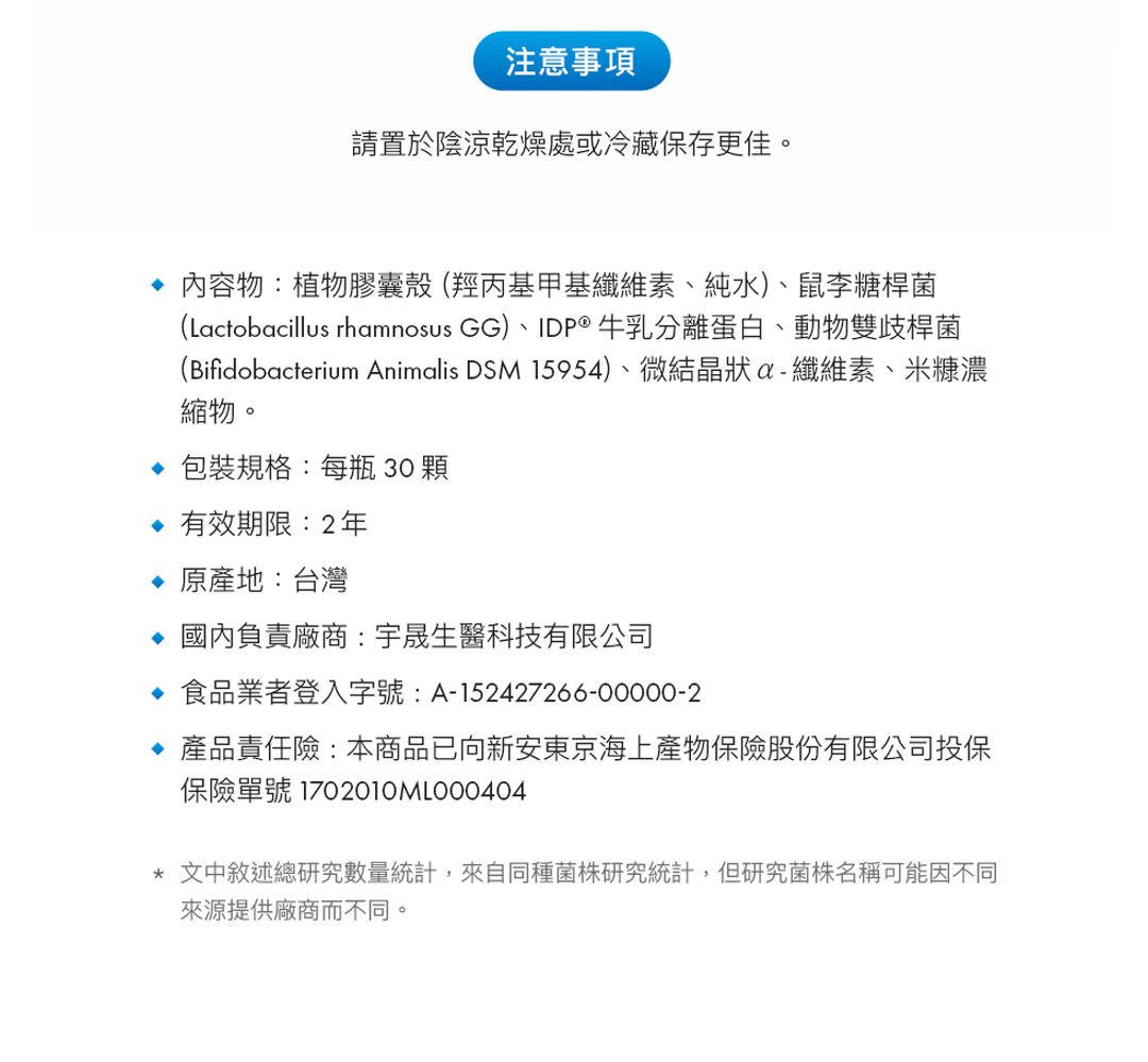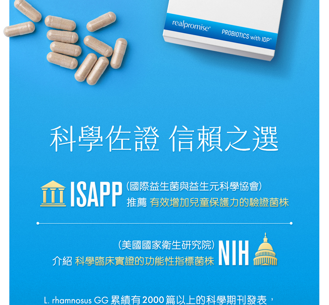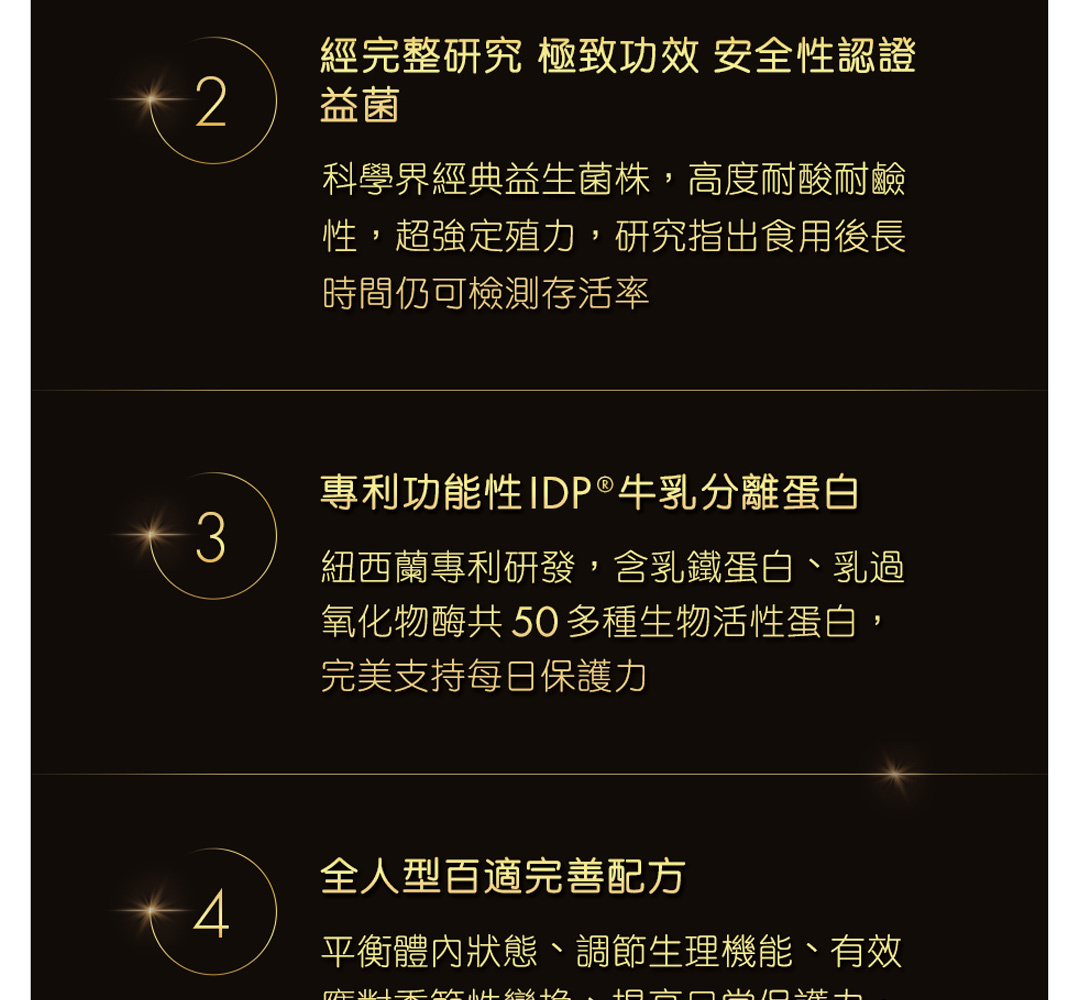 這兩株菌株已證明適合各年齡族群補充食用,擁有多層次的健康效益。IDP® 牛乳分離蛋白則是來自紐西蘭,都有臨床功效實證。