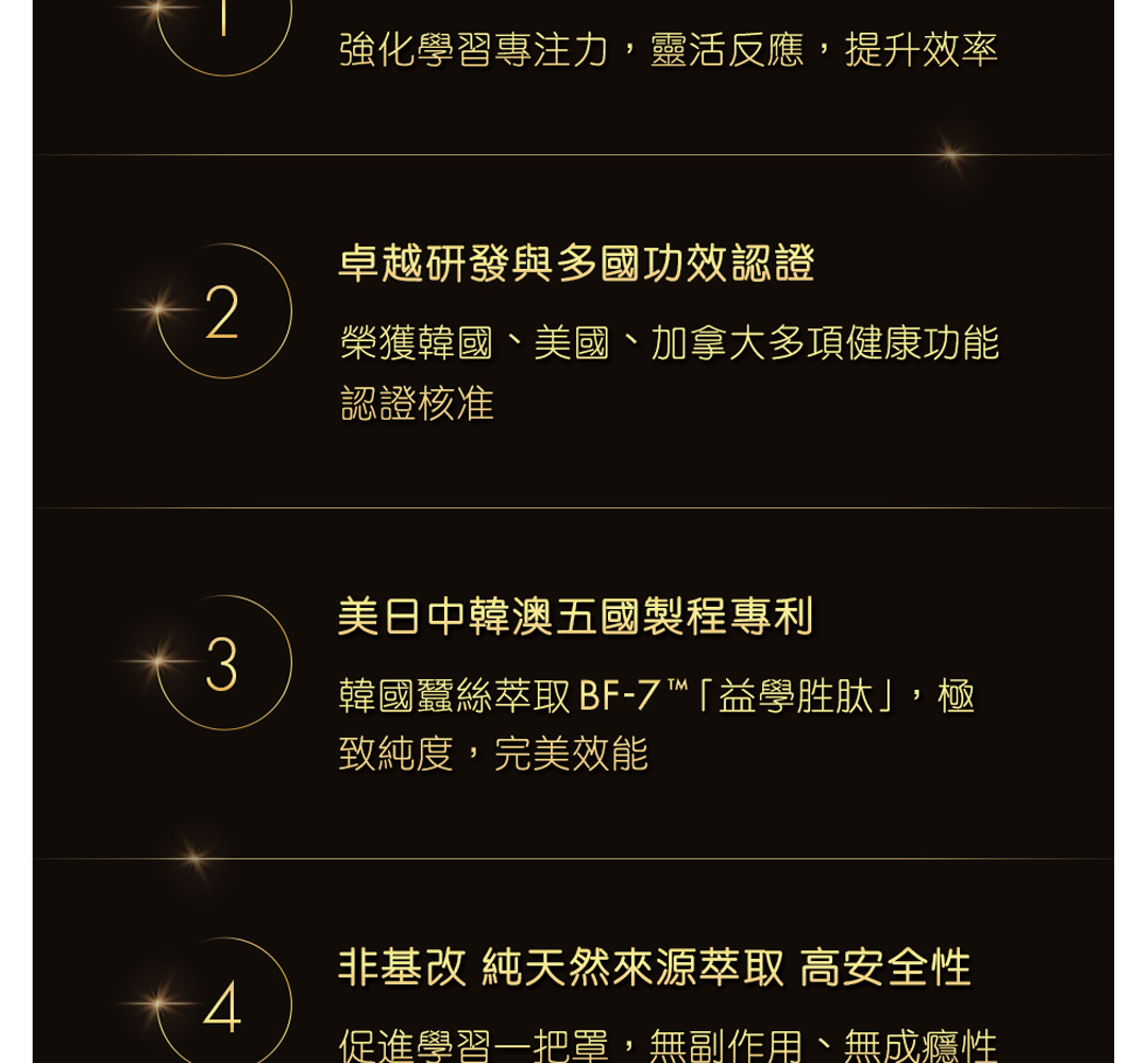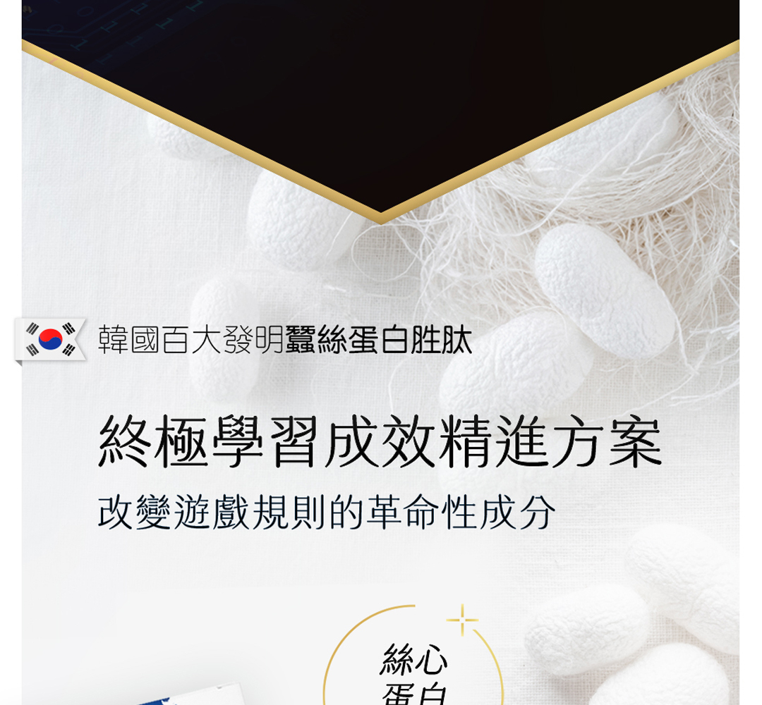 學思達超迷你膠囊精選蠶絲萃取「益學胜肽」,不僅對於兒童或青少年的學業學習有幫助性,在臨床研究上,對於成年人工作繁忙需要加強工作成效,以及銀髮族加強反應力等均有幫助性。