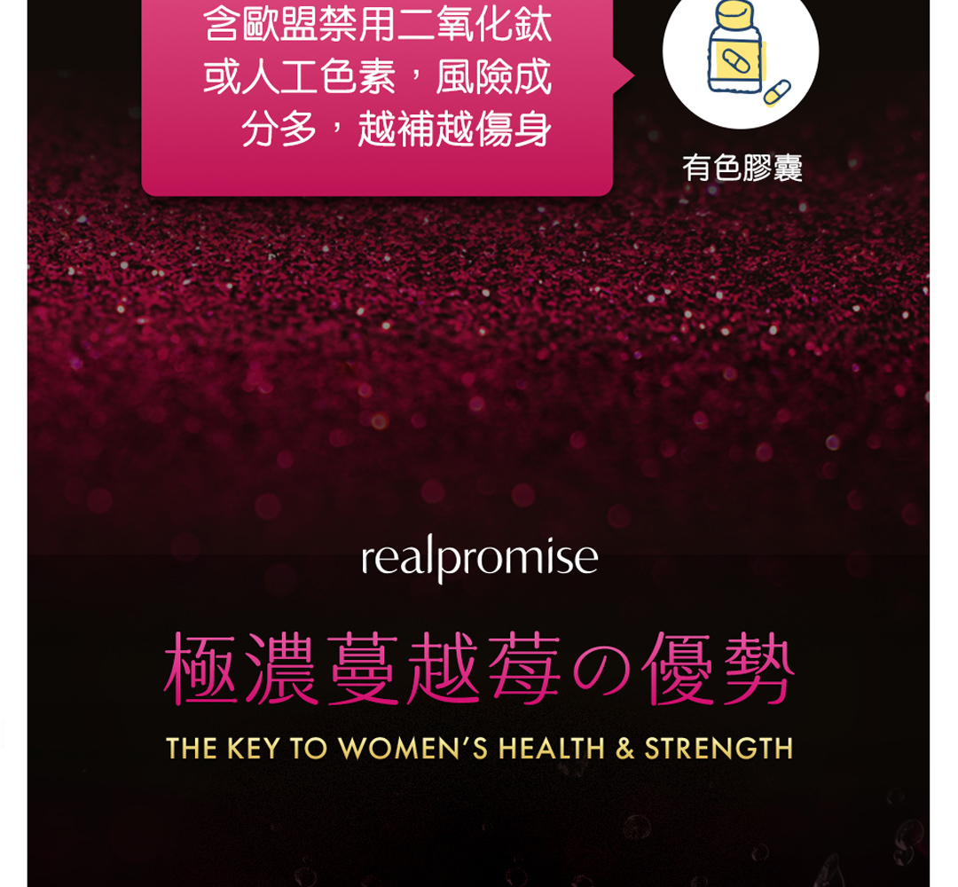 「極濃蔓越莓 超迷你膠囊」強調精選超高濃縮型特規蔓越莓萃取物,含有超高 A 型原花青素 (PACs),符合歐美臨床研究特等規格,A 型原花青素濃度越高,成效越好,能幫助改變女性私密的細菌叢生態。此外,極濃蔓越莓超迷你膠囊是市售少見的超迷你尺寸膠囊,超方便吞嚥,適合亞洲與台灣女性,一天一顆即可達成良好成效。