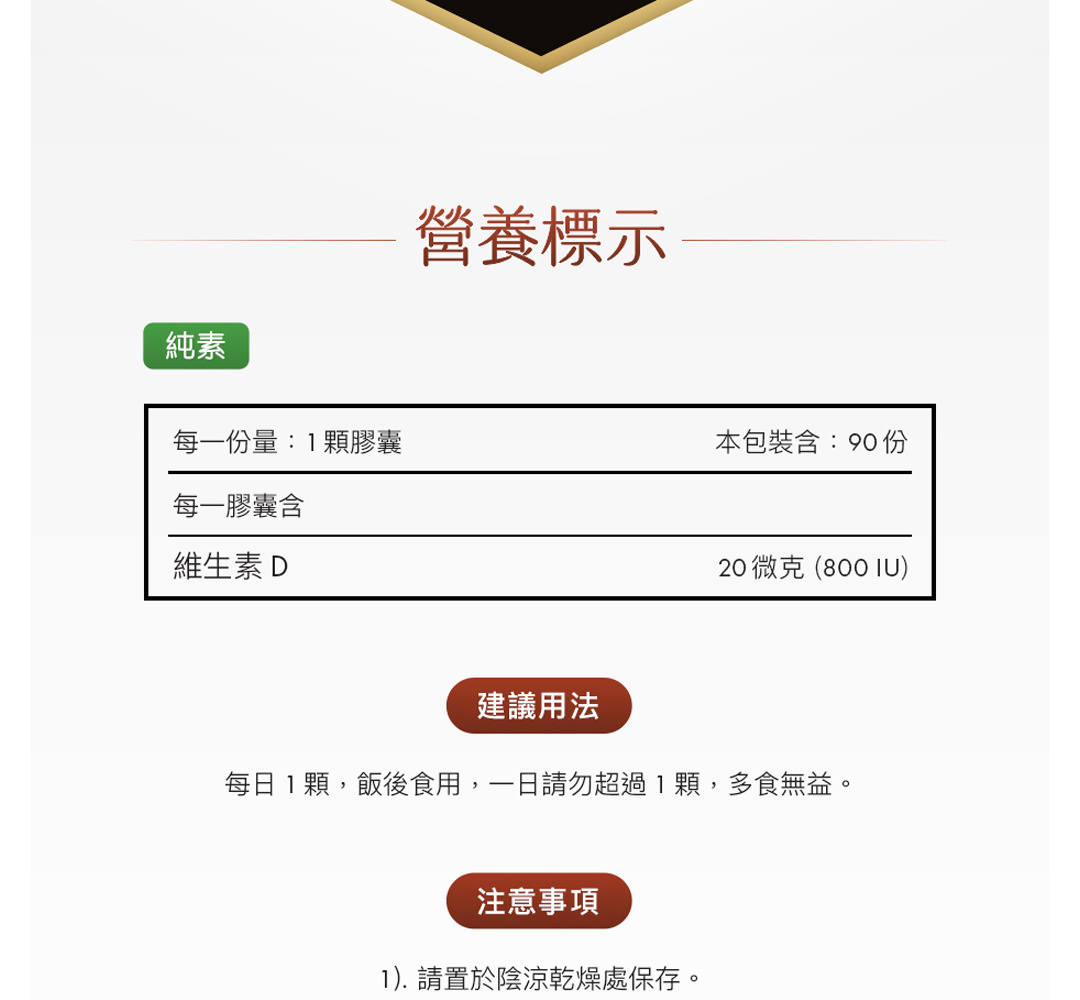 • 每顆含有 800 IU 的非活性維生素 D3,高效能好吸收。
