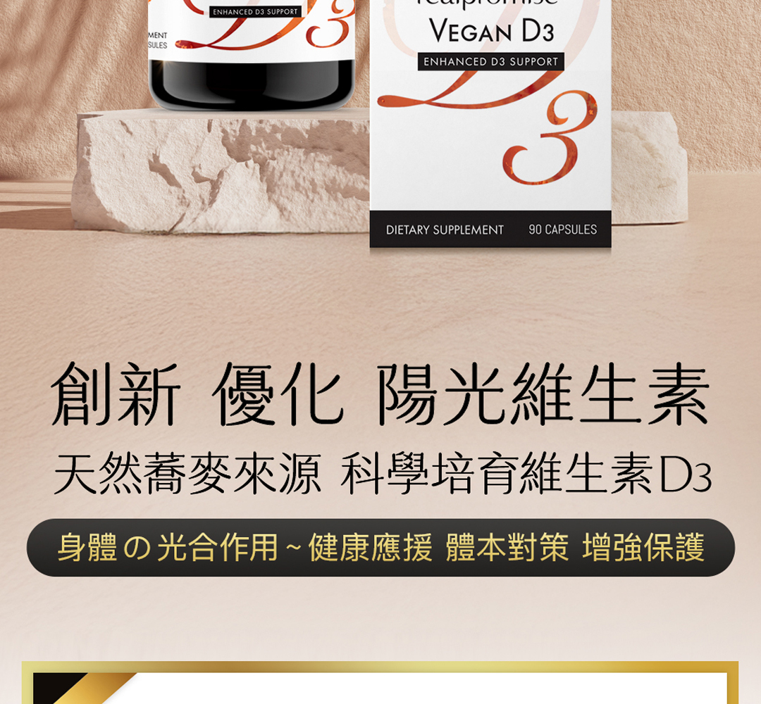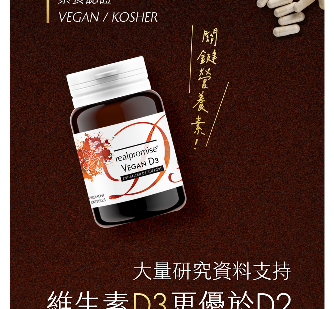 Q1:realpromise 純素維生素 D3 與市售維生素 D 有什麼差異?