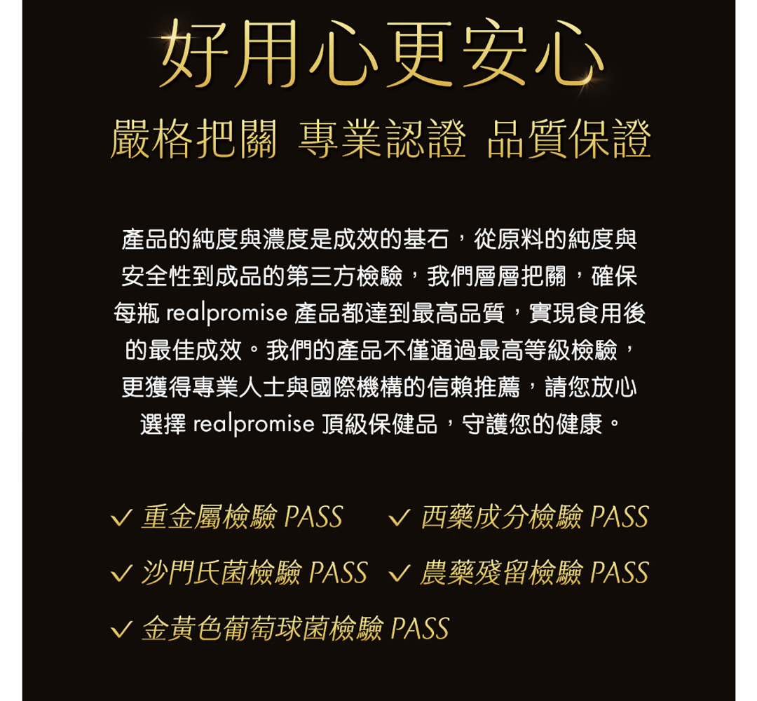 • 全批次經第三方公正實驗室 600 項以上純度檢驗,報告公開透明,安心信賴。