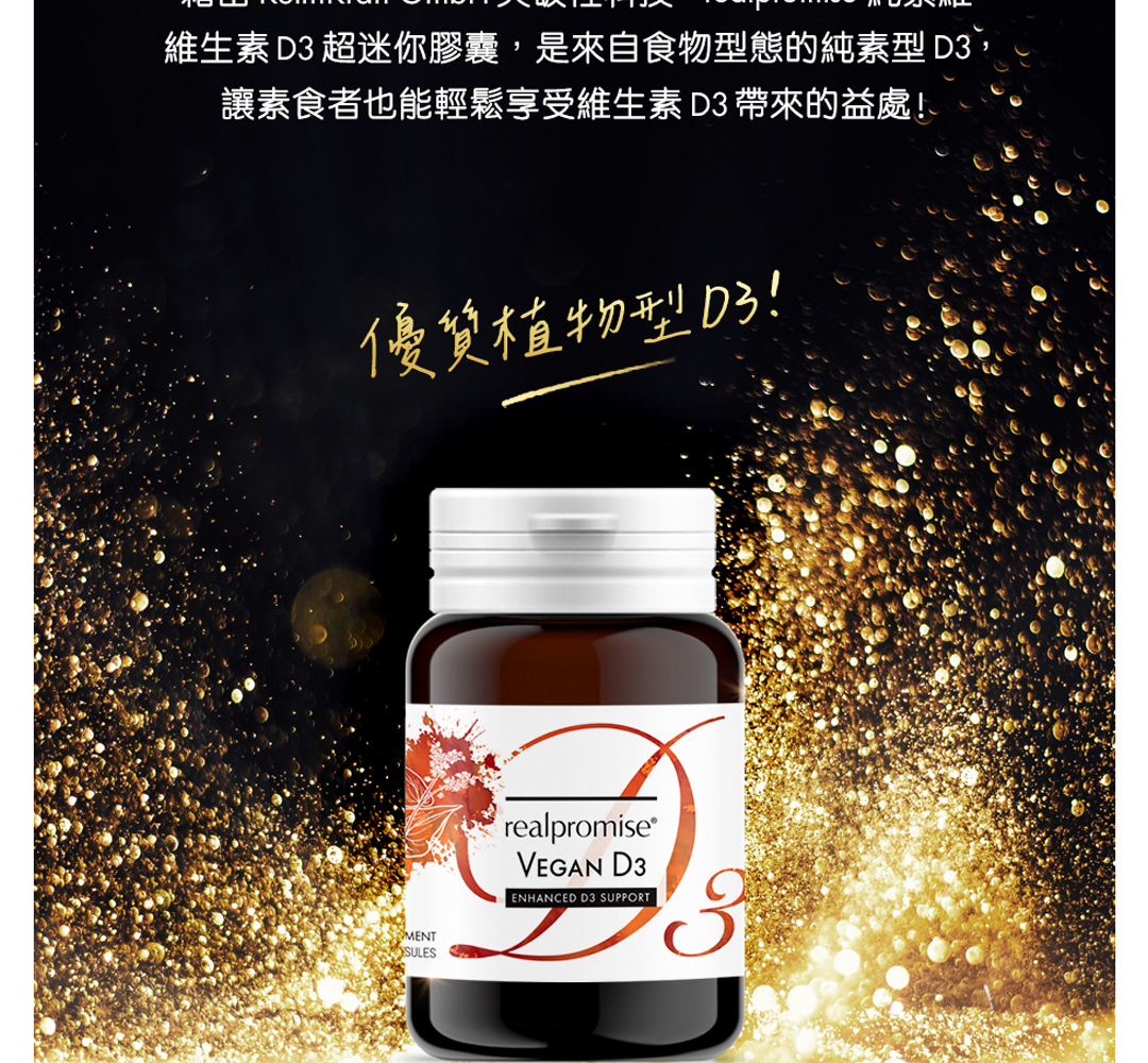realpromise 純素維生素 D3 超迷你膠囊擁有多項特點: