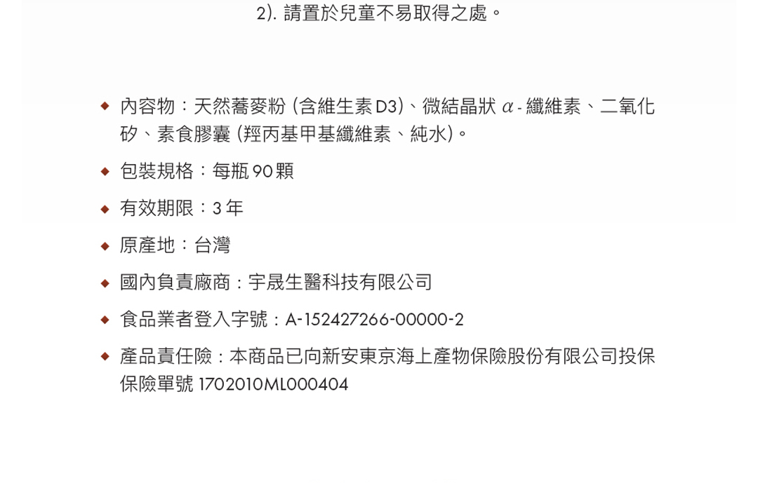 1. 選擇非活性維生素 D:「活性」維生素 D 一般屬於藥品等級,食用上因為欠缺人體調節機制,所以一旦過量,容易有危險的副作用,需特別小心,並且需在專業醫療人員諮詢下食用。而一般保健品使用的是「非活性」維生素 D,安全度高,即使每天食用也無疑慮。
