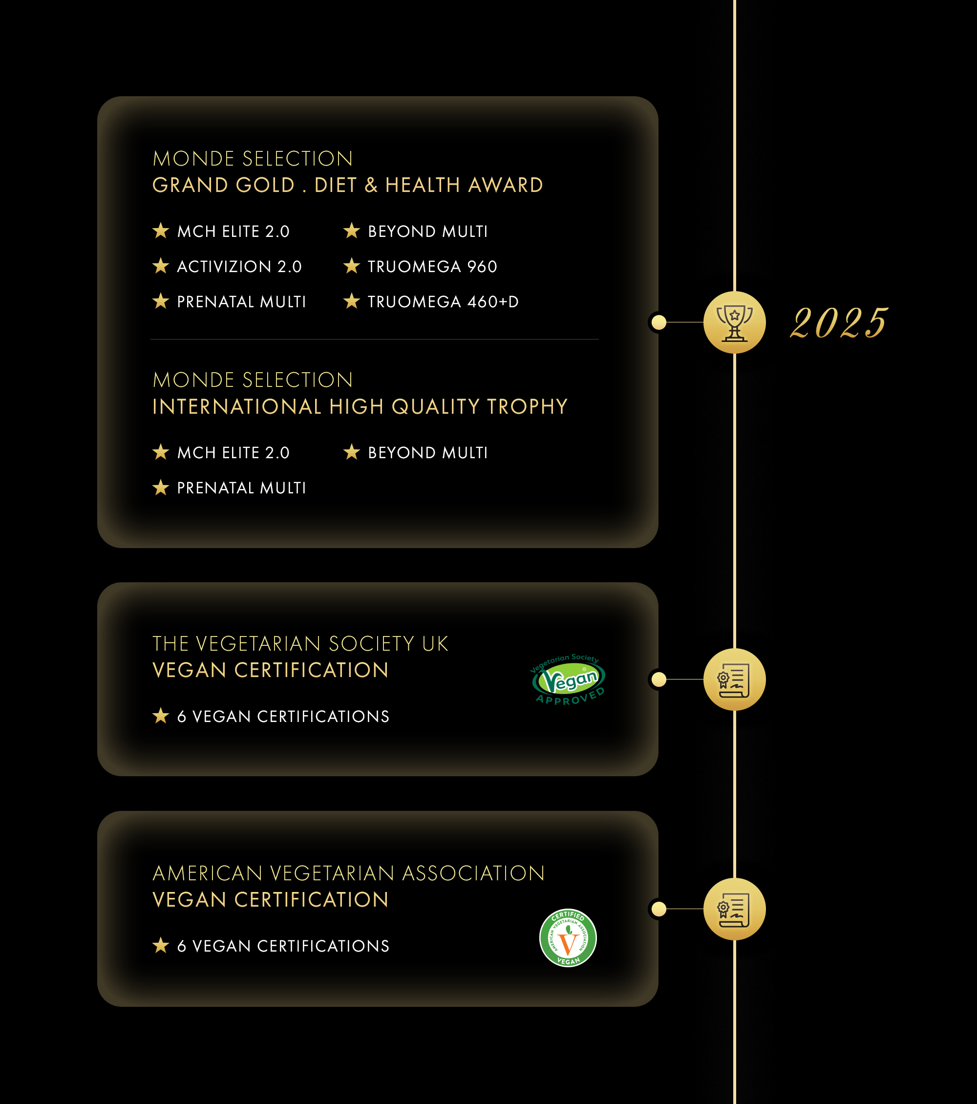- Products that receive the Gold Award or Grand Gold Award for three consecutive years are further awarded the International High-Quality Trophy.