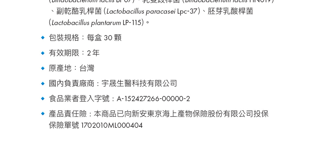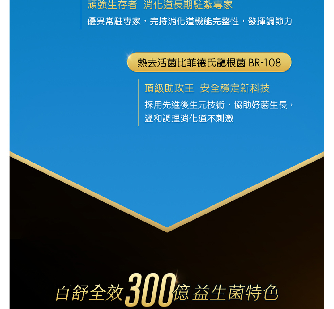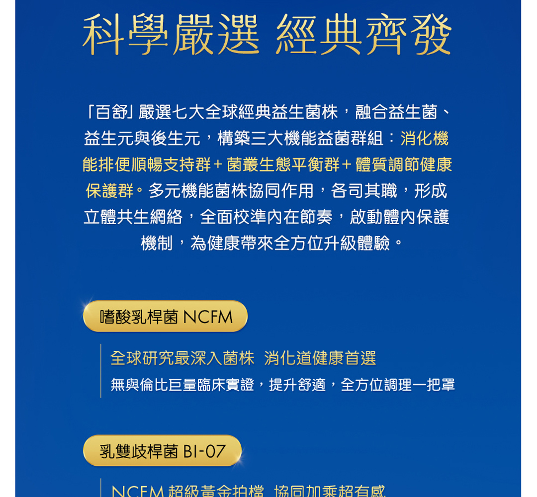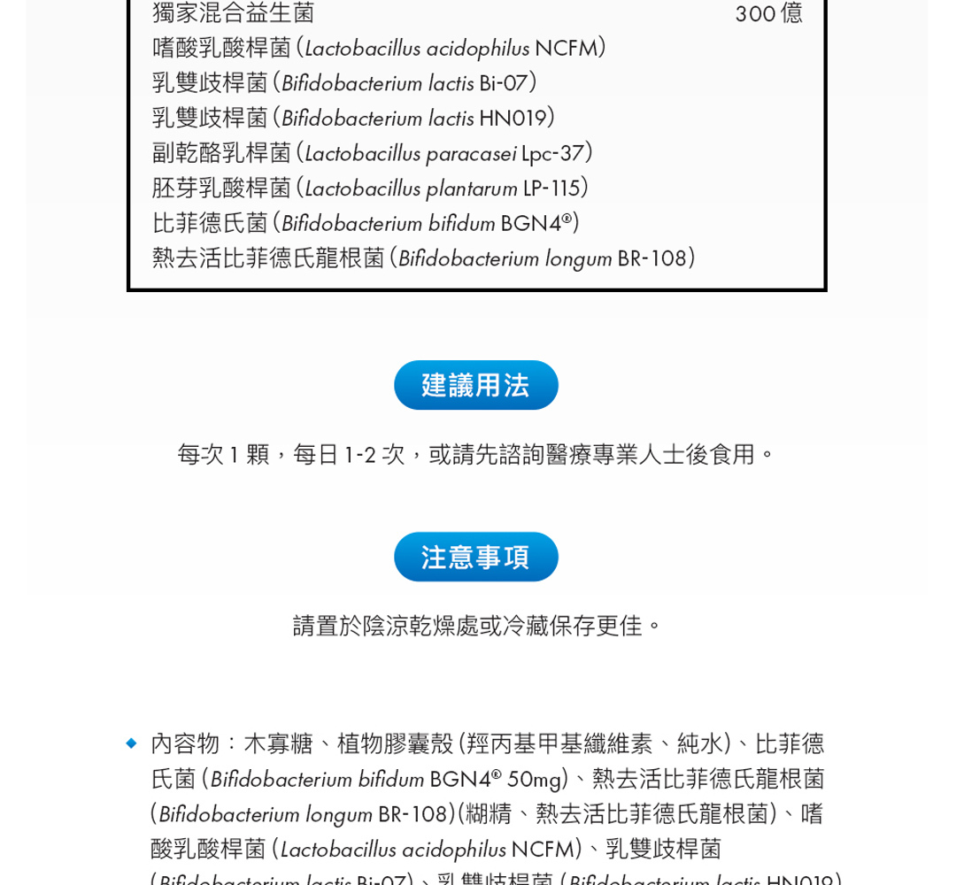 百舒全效 300 億益生菌精選高臨床實證菌株,包含: