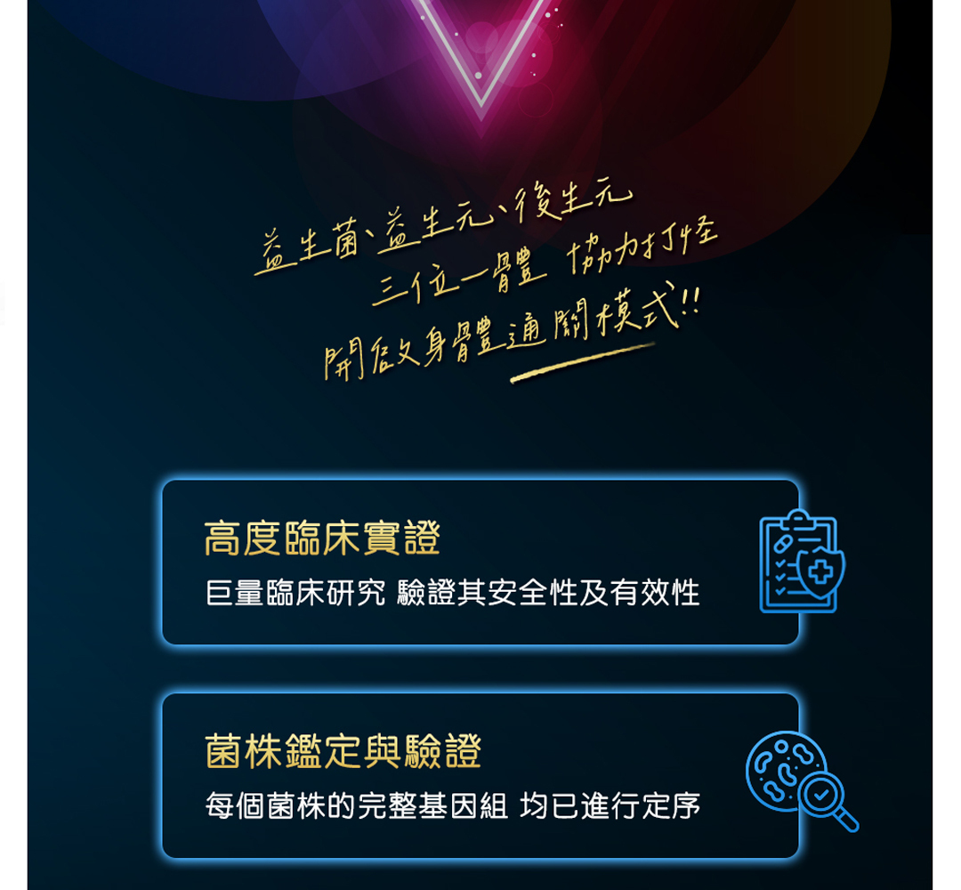 我們不會為了降低成本而選用無臨床研究或僅具有微量臨床支持的廉價菌株,臨床研究猶如代表益生菌的身分證,無大量臨床代表無法證實食用效果。