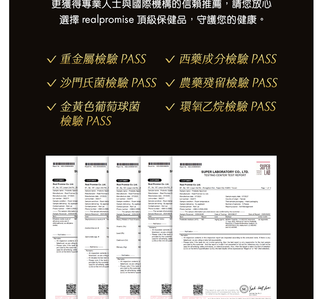 • 產品全批次經第三方實驗室檢驗通過 -