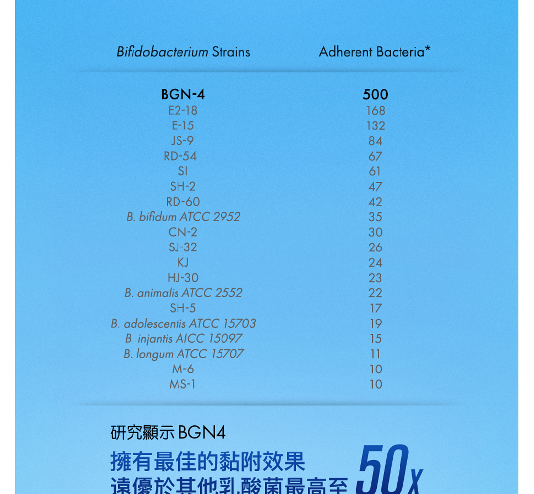 • 比菲德氏菌 (Bifidobacterium bifidum BGN4® 50mg)