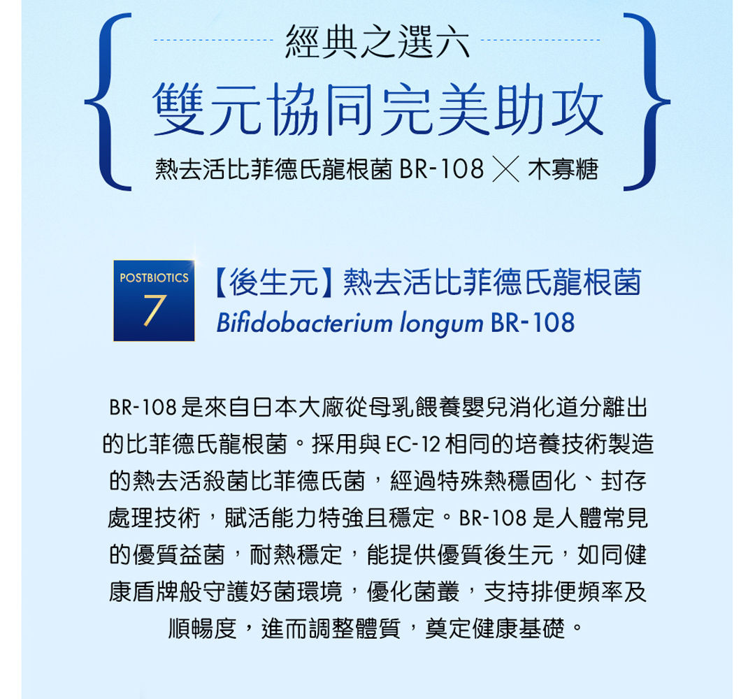• 熱去活比菲德氏龍根菌 (Bifidobacterium longum BR-108)