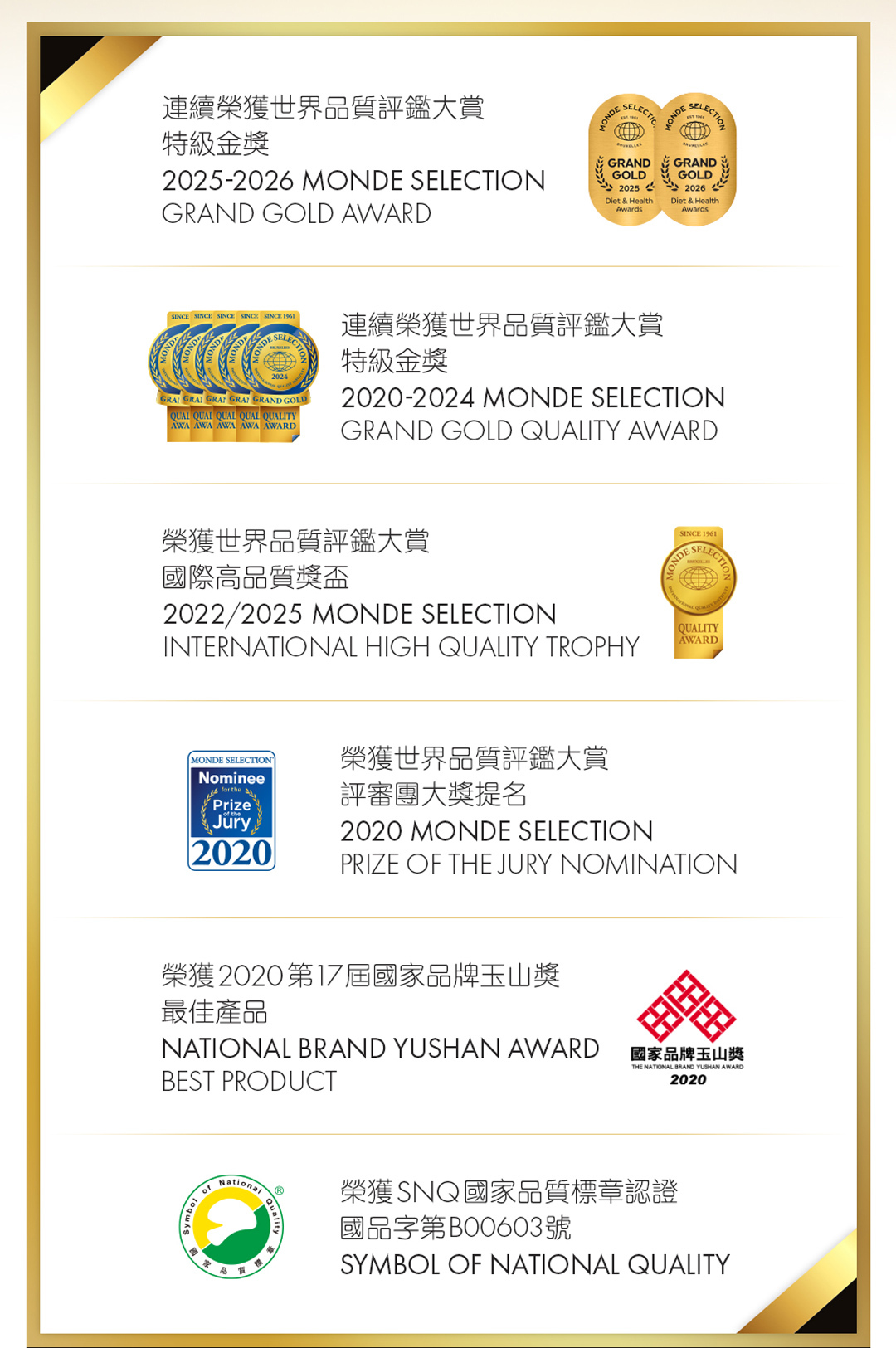 榮耀 | 榮獲全球 12 項大獎頂級鈣質保健品