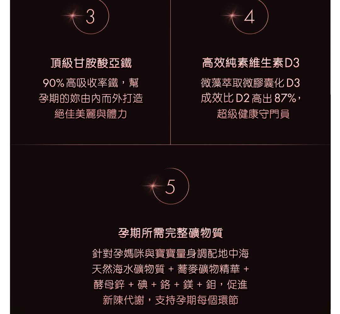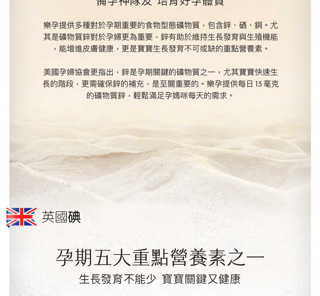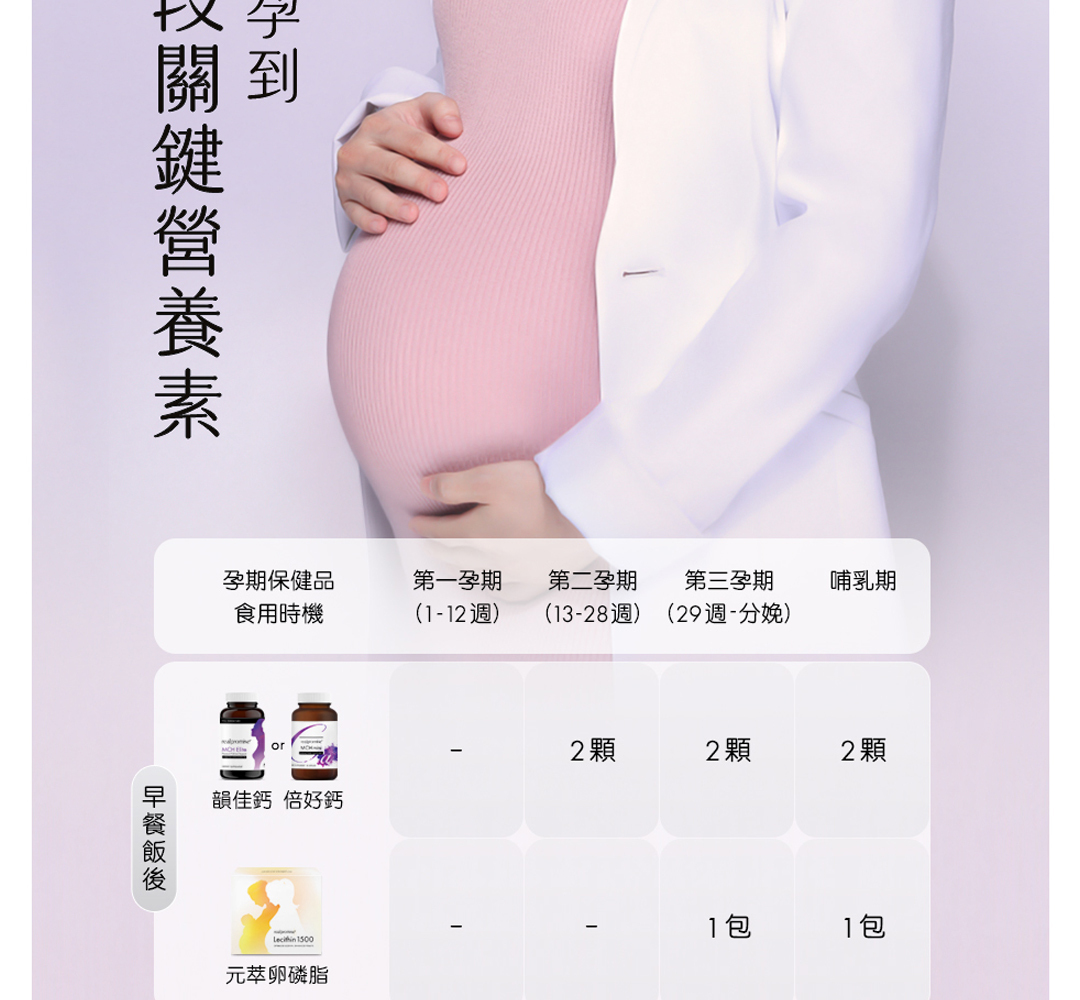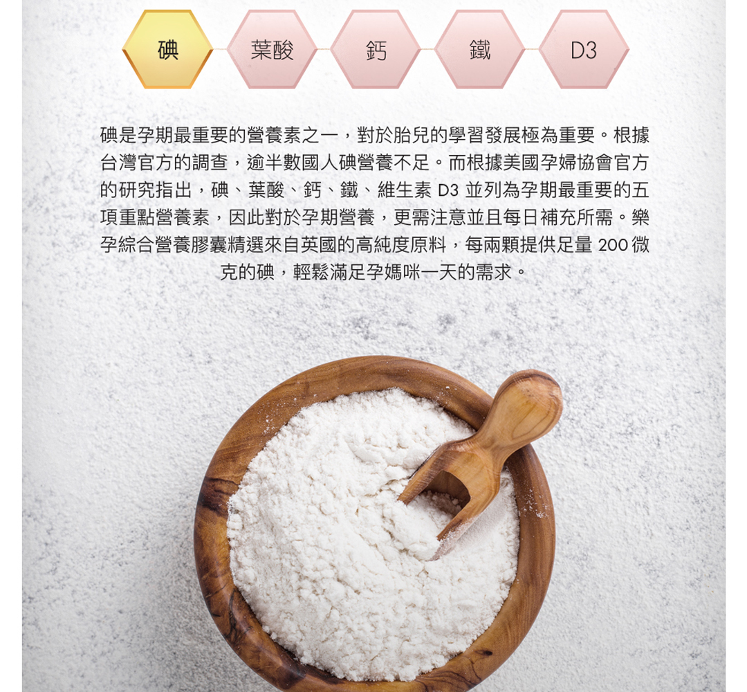 • 添加符合孕期需求足量碘,確保寶寶學習力部位發育關鍵