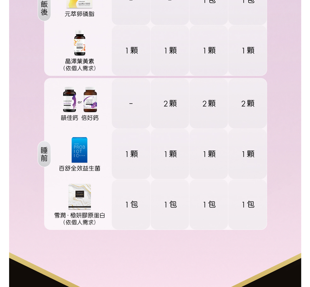 睡前:韻佳鈣 (可空腹)