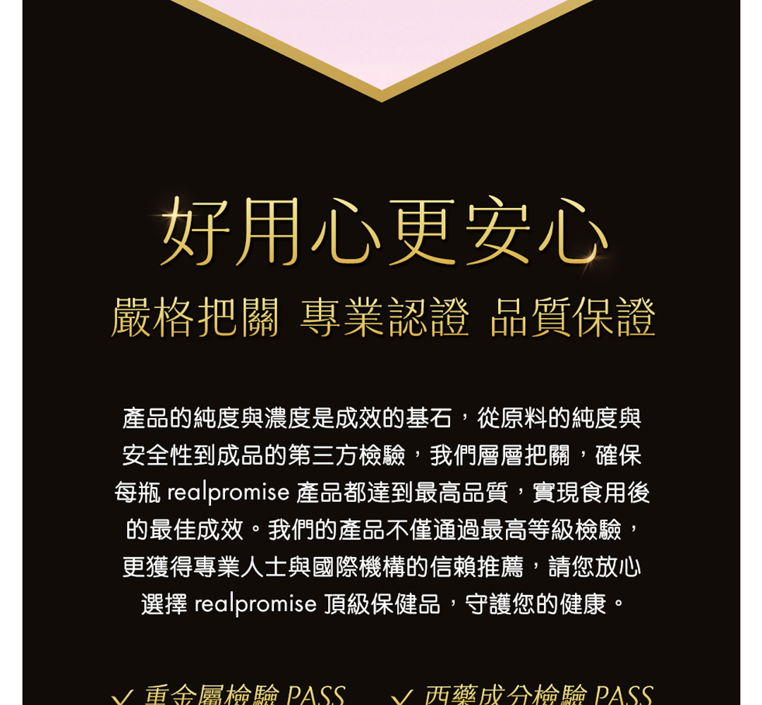 • 全批次經第三方公正實驗室 600 項純度驗證,報告公開透明,安全有保障