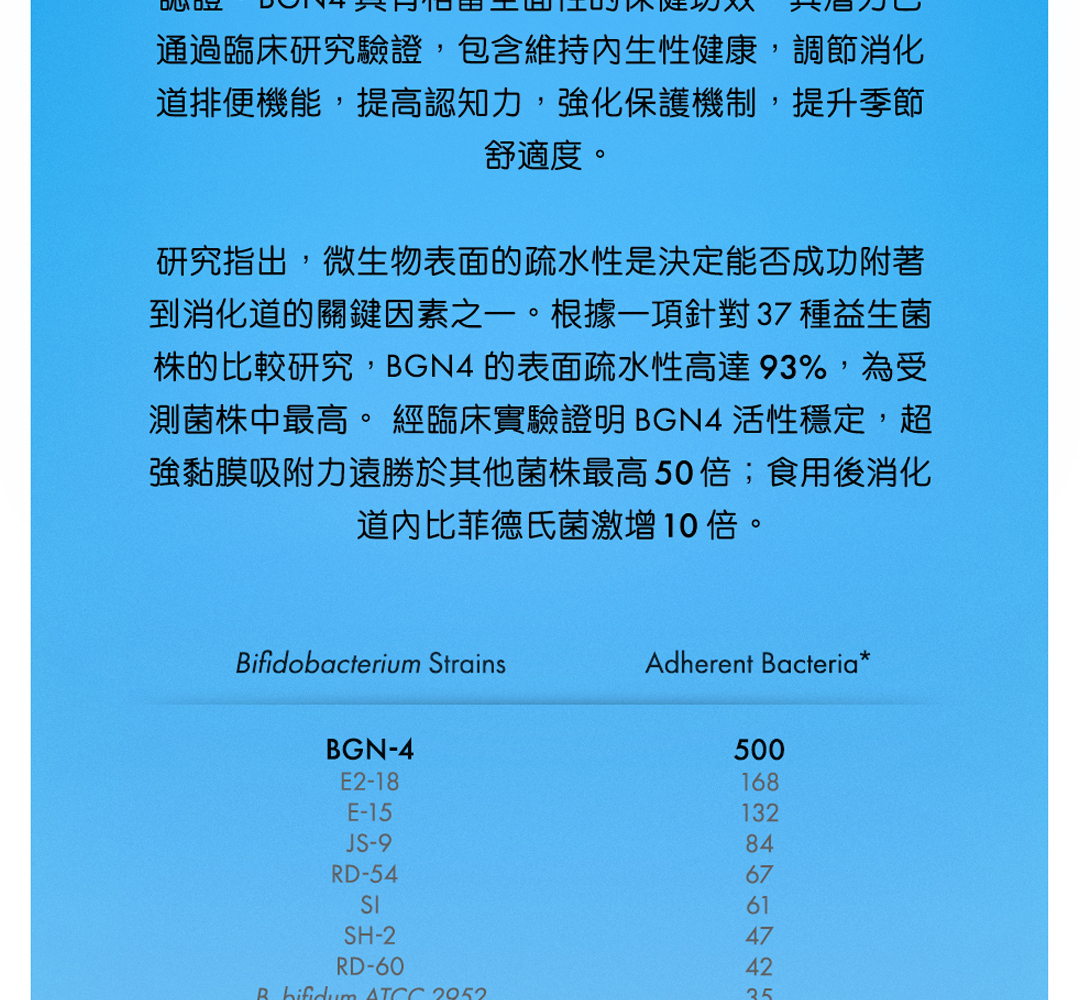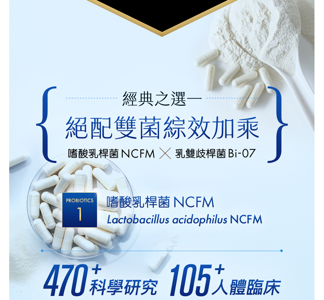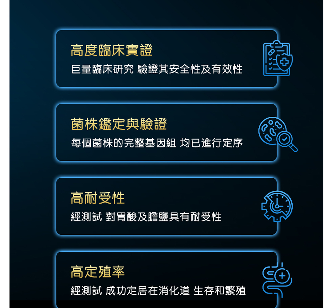 我們不會為了降低成本而選用無臨床研究或僅具有微量臨床支持的廉價菌株,臨床研究猶如代表益生菌的身分證,無大量臨床代表無法證實食用效果。