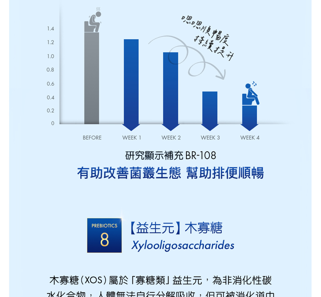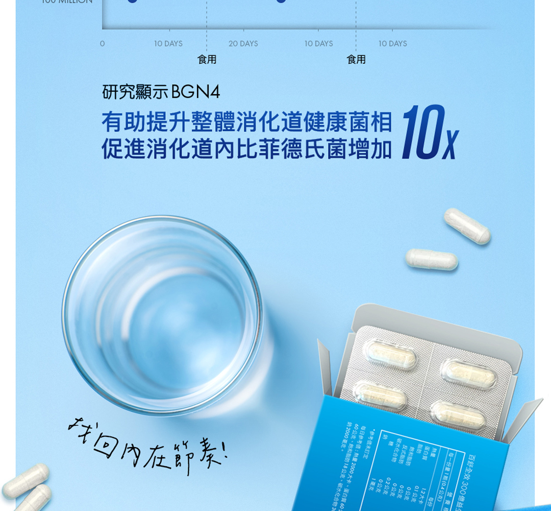 百舒全效益生菌除了精選權威性益生菌株,更添加木寡糖益生元,以及來自日本的後生元,有效改變細菌叢生態,維持消化道機能。