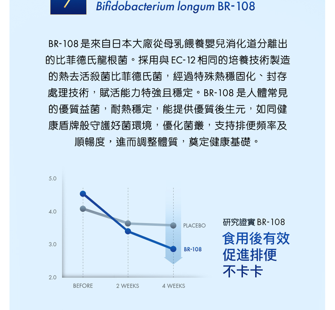 • 熱去活比菲德氏龍根菌 (Bifidobacterium longum BR-108)