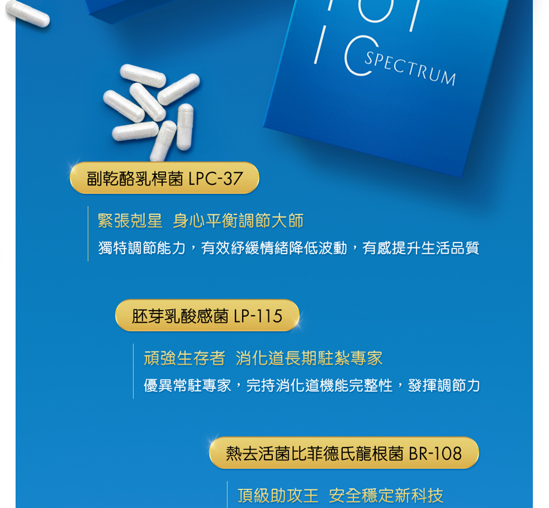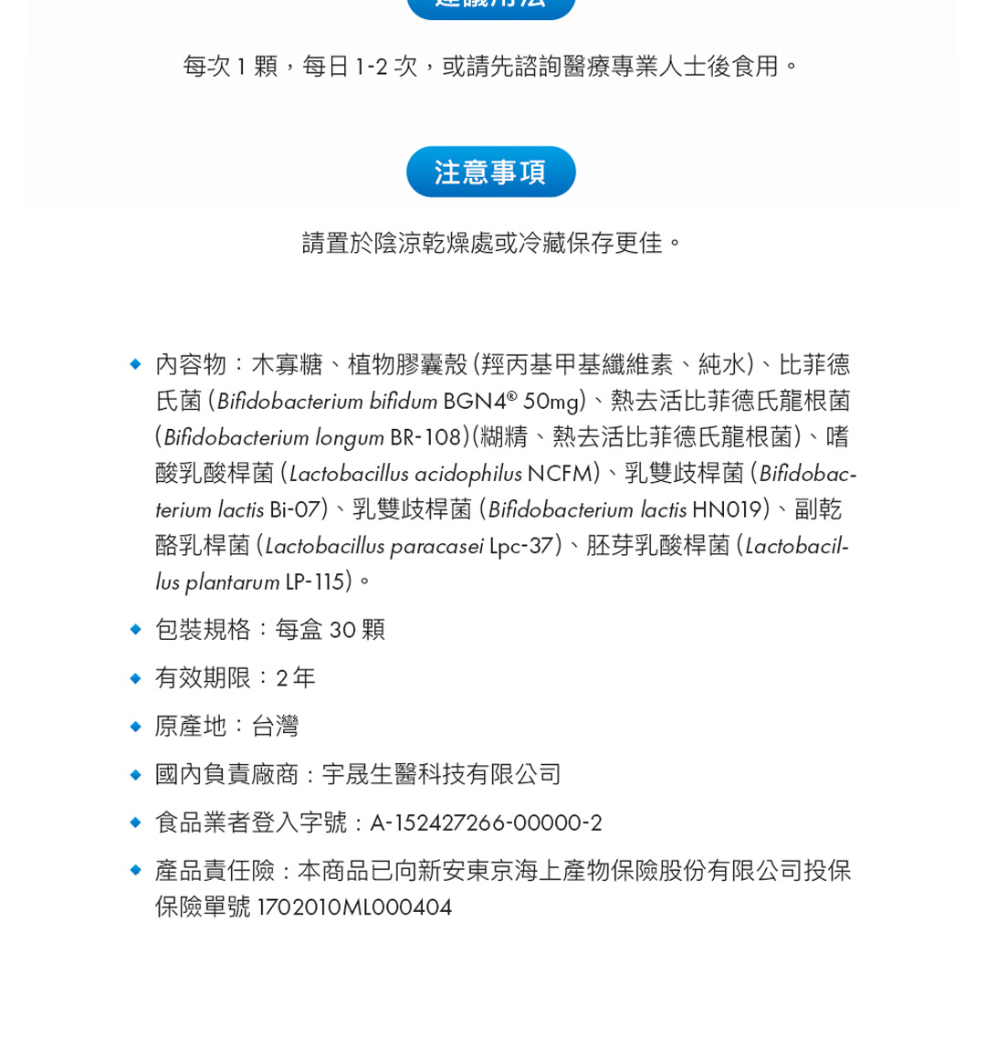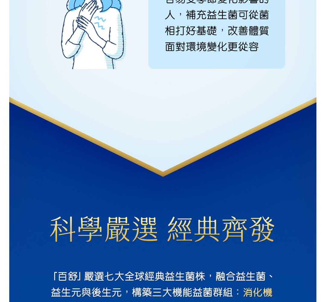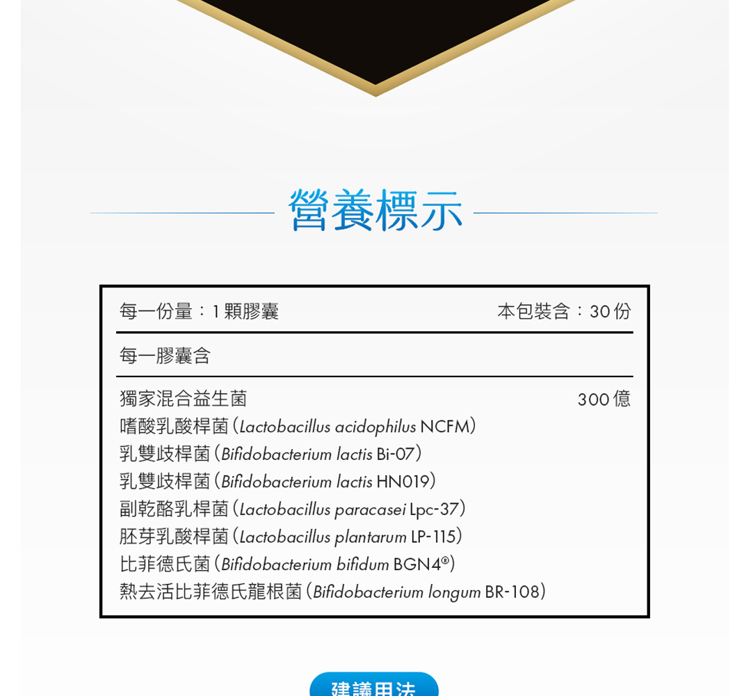 百舒全效 300 億益生菌精選高臨床實證菌株,包含: