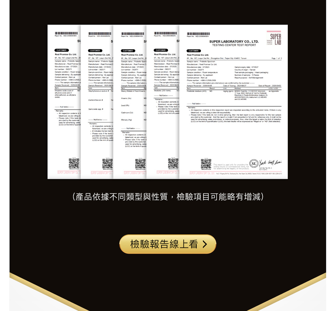 百舒全效益生菌全批次經過第三方公正實驗室 600 項以上純度檢驗,檢驗報告線上公開透明,隨時可以查詢,是您最安心的保健選擇。