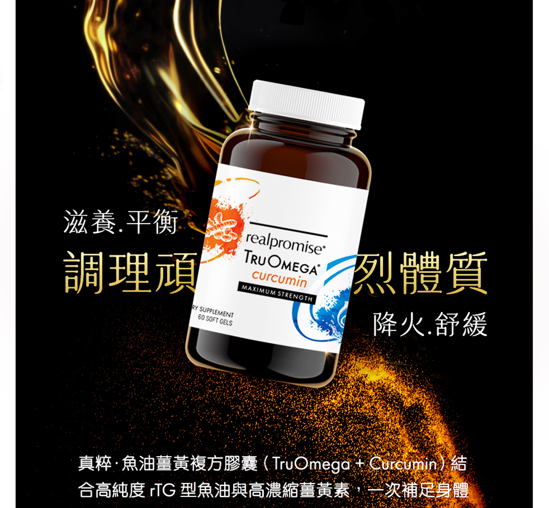 真粹‧魚油薑黃複方膠囊採用 rTG 重新酯化三酸甘油酯型魚油,結合高濃度 Omega-3 與優異吸收率,非常適合需要高強度保健的人群,搭配薑黃成分更能雙向支持整體健康。