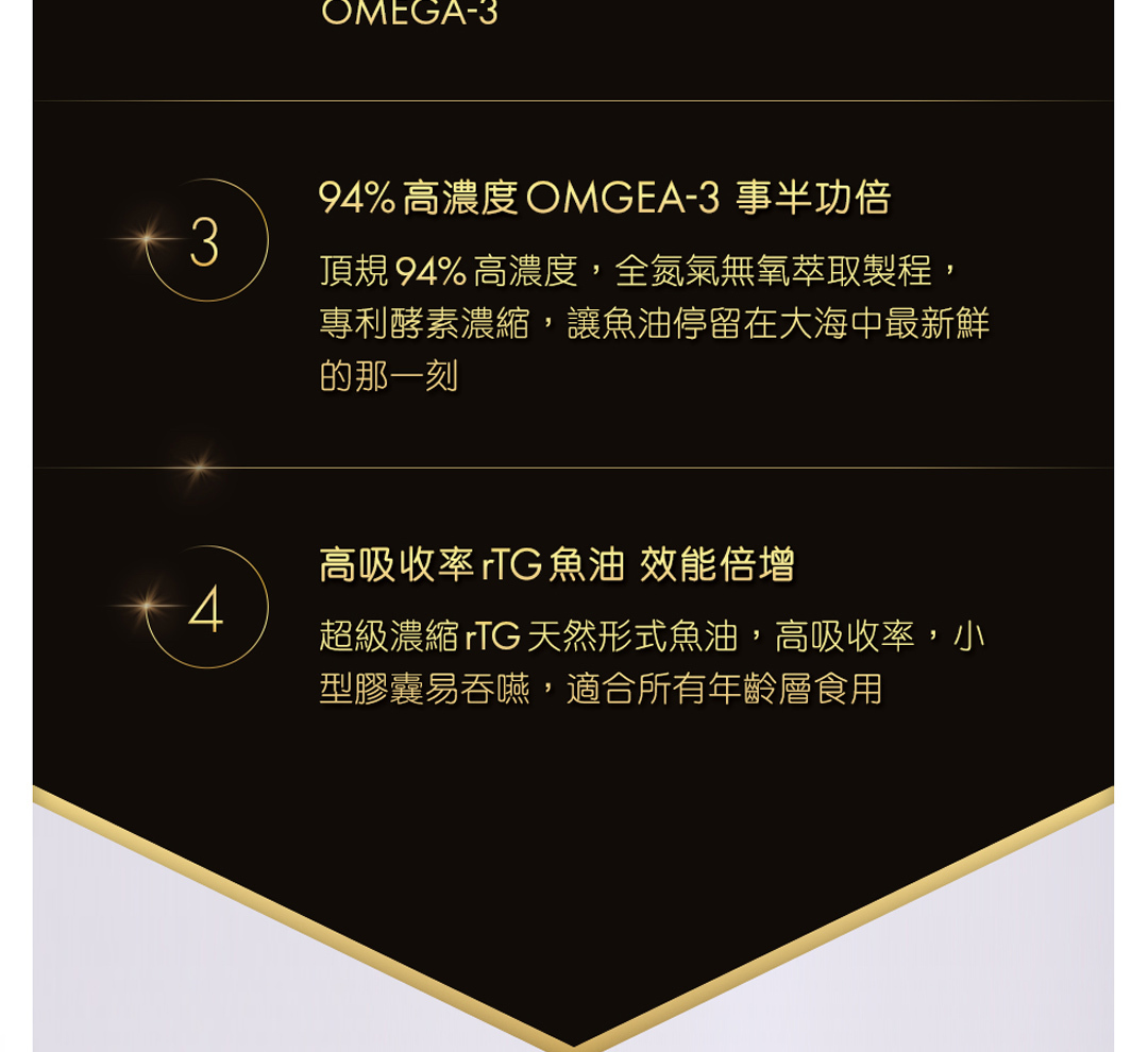 特色 | 頂級 94% 高濃縮魚油 + 維生素 D3 + 維生素E