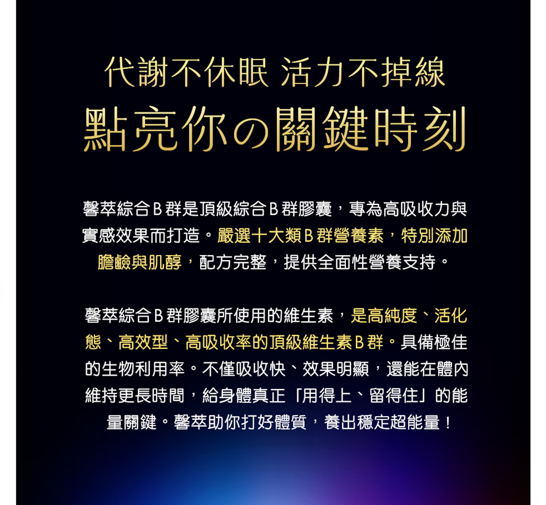 馨萃綜合 B 群是提供頂級活性形式及甲基營養素的維生素 B 群配方。
