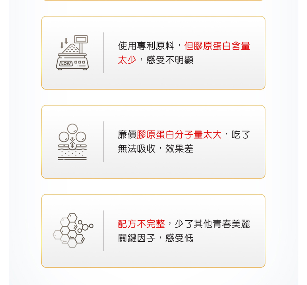 膠原蛋白本身是相當安全的成分,與其他保健品並無衝突性,包含鈣、益生菌等等,都可以一起食用沒問題。