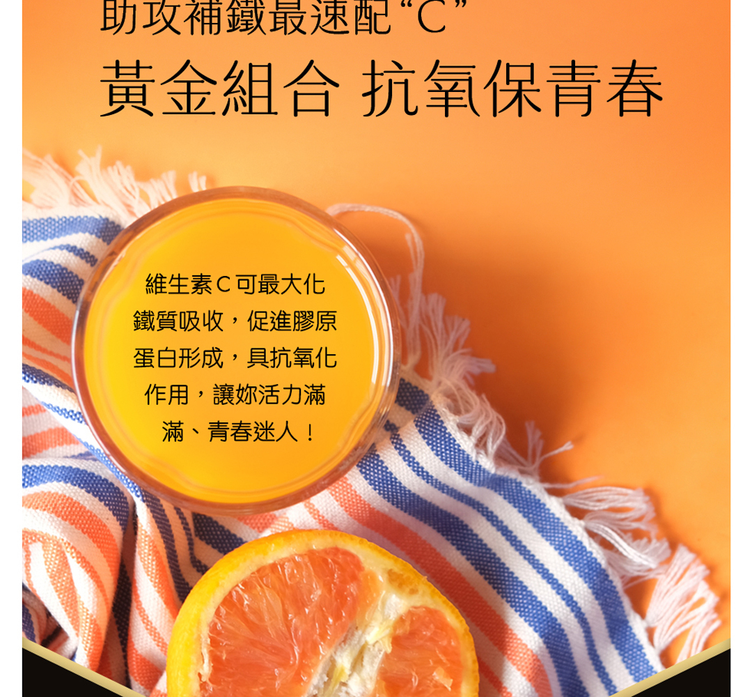 ▫ 維生素 C:DSM 大廠高純度 Quali®-C,促進鐵的吸收