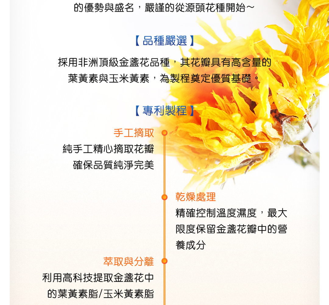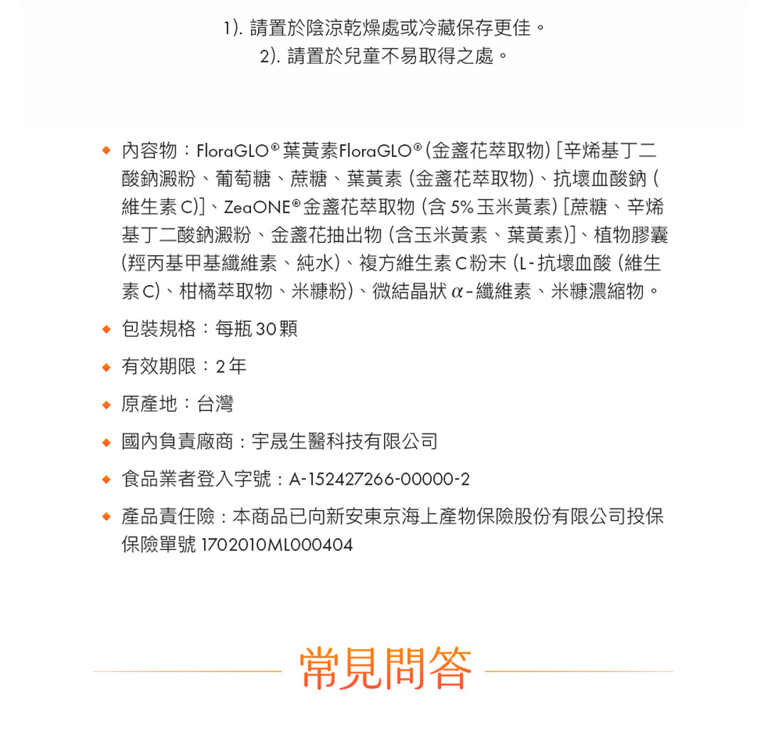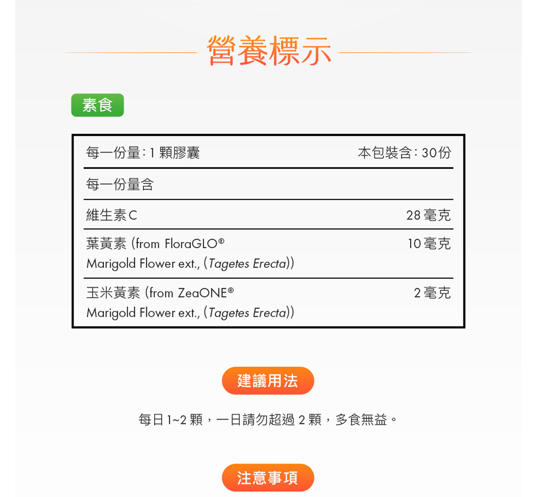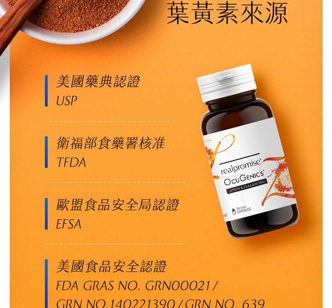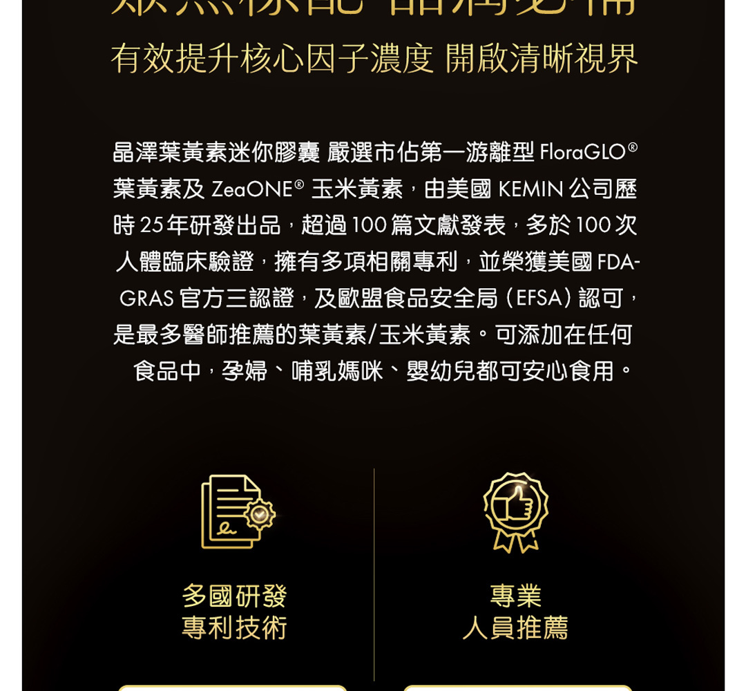 特色 | 專利游離型 FloraGLO® 葉黃素 + ZeaONE® 玉米黃素