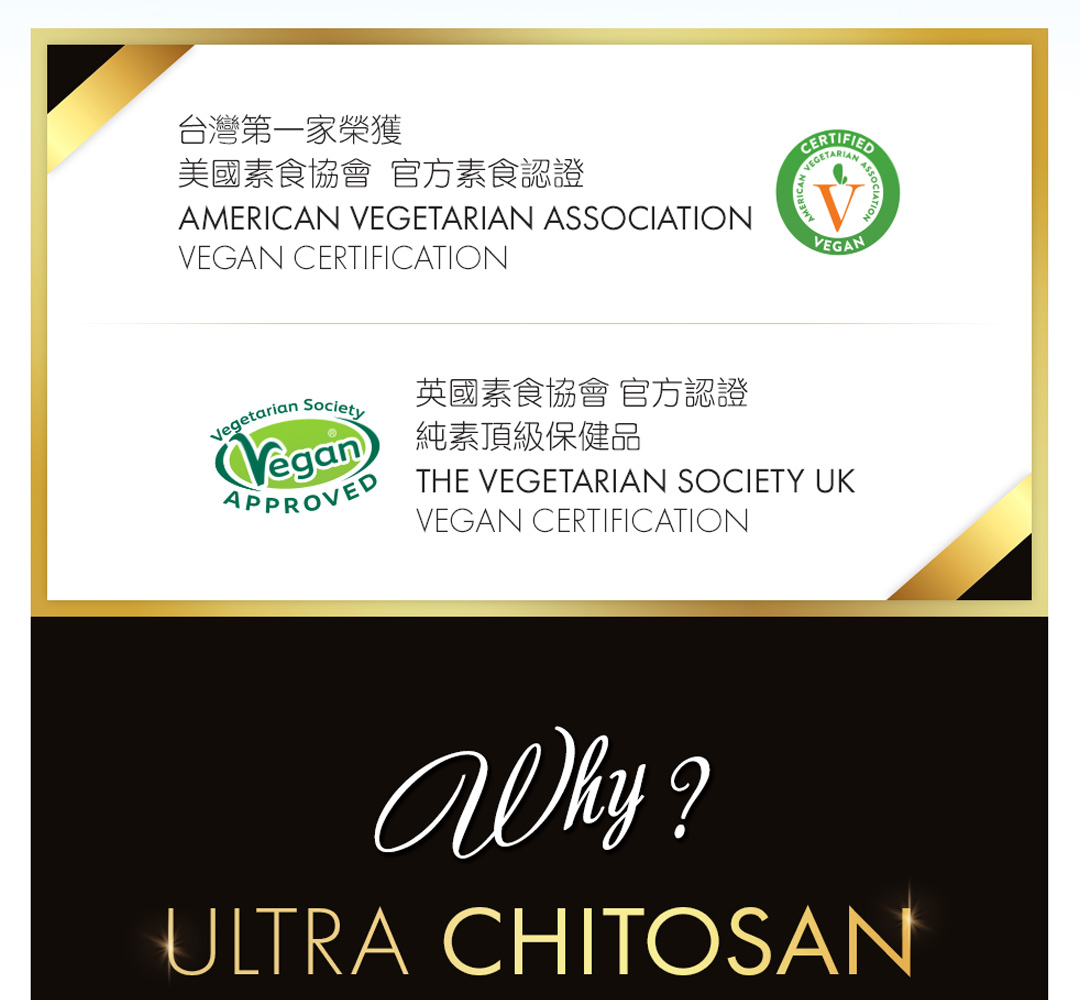 日日食控素食甲殼素膠囊精選非常獨特的 KiOnutrime-CsG® 甲殼素,擁有多項專利、認證與臨床研究。